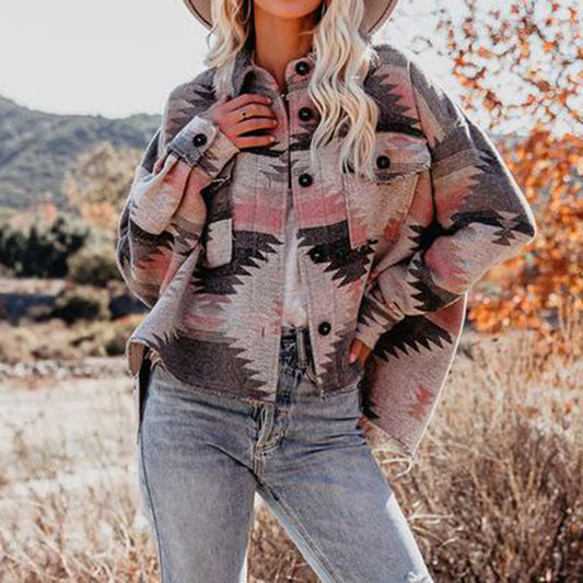 Oversized Vintage Aztec Long Sleeves Shirt Jacket