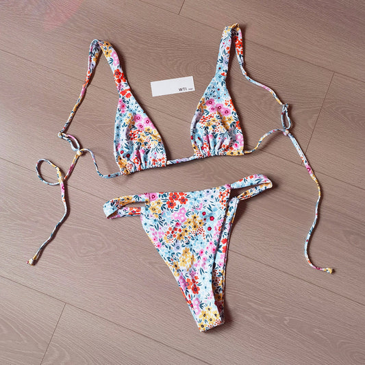Ditsy Floral Print Triangle Bikini Swimsuit