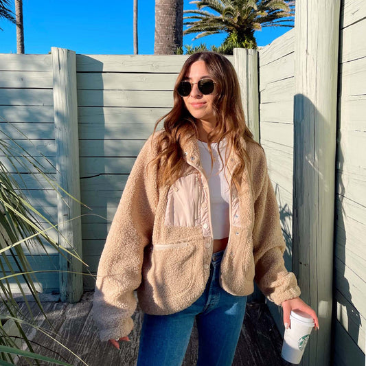 Faux Shearling Sporty Pocket Short Jacket