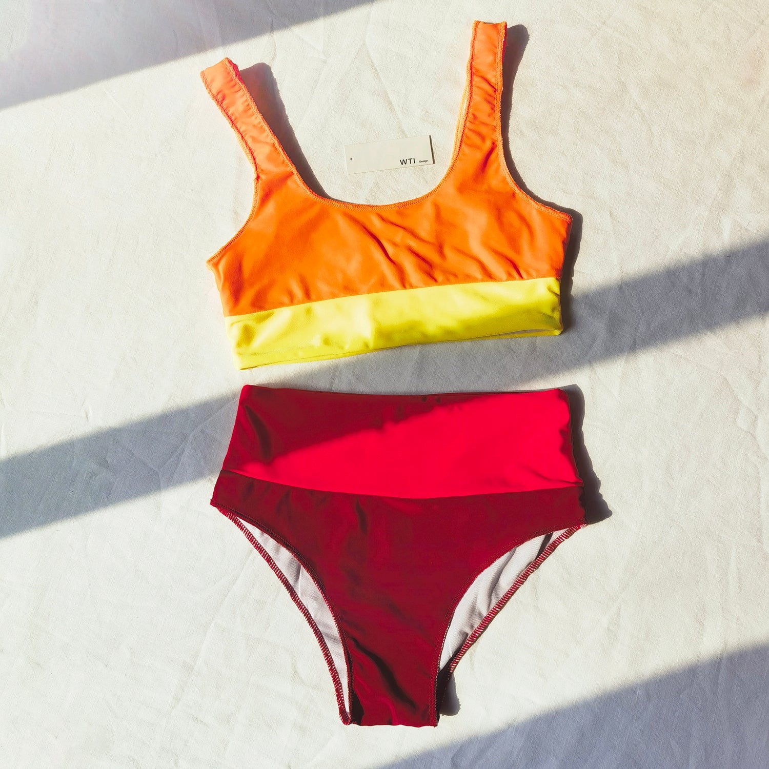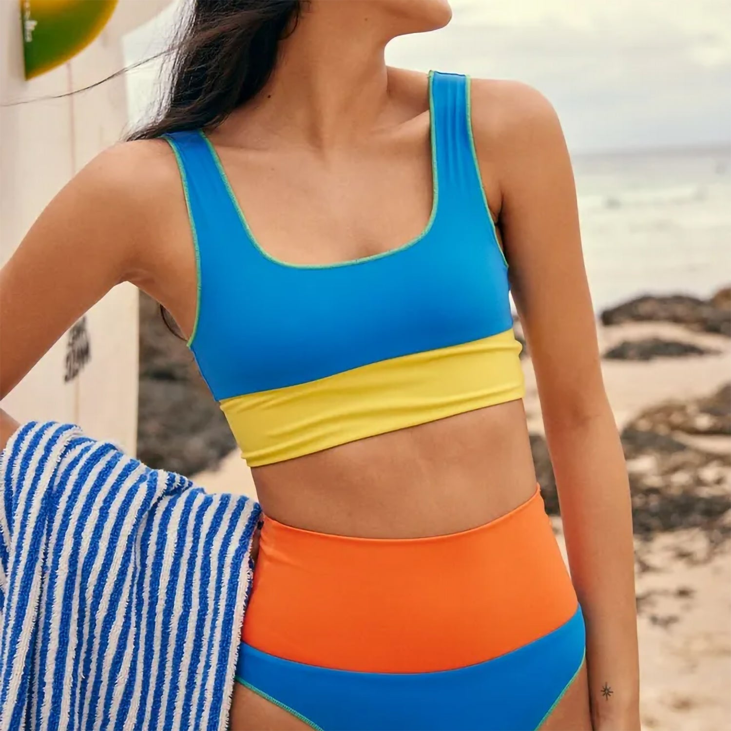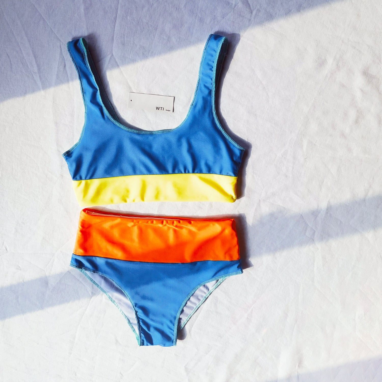 Blocked Crop Top High Cut Bikini Set