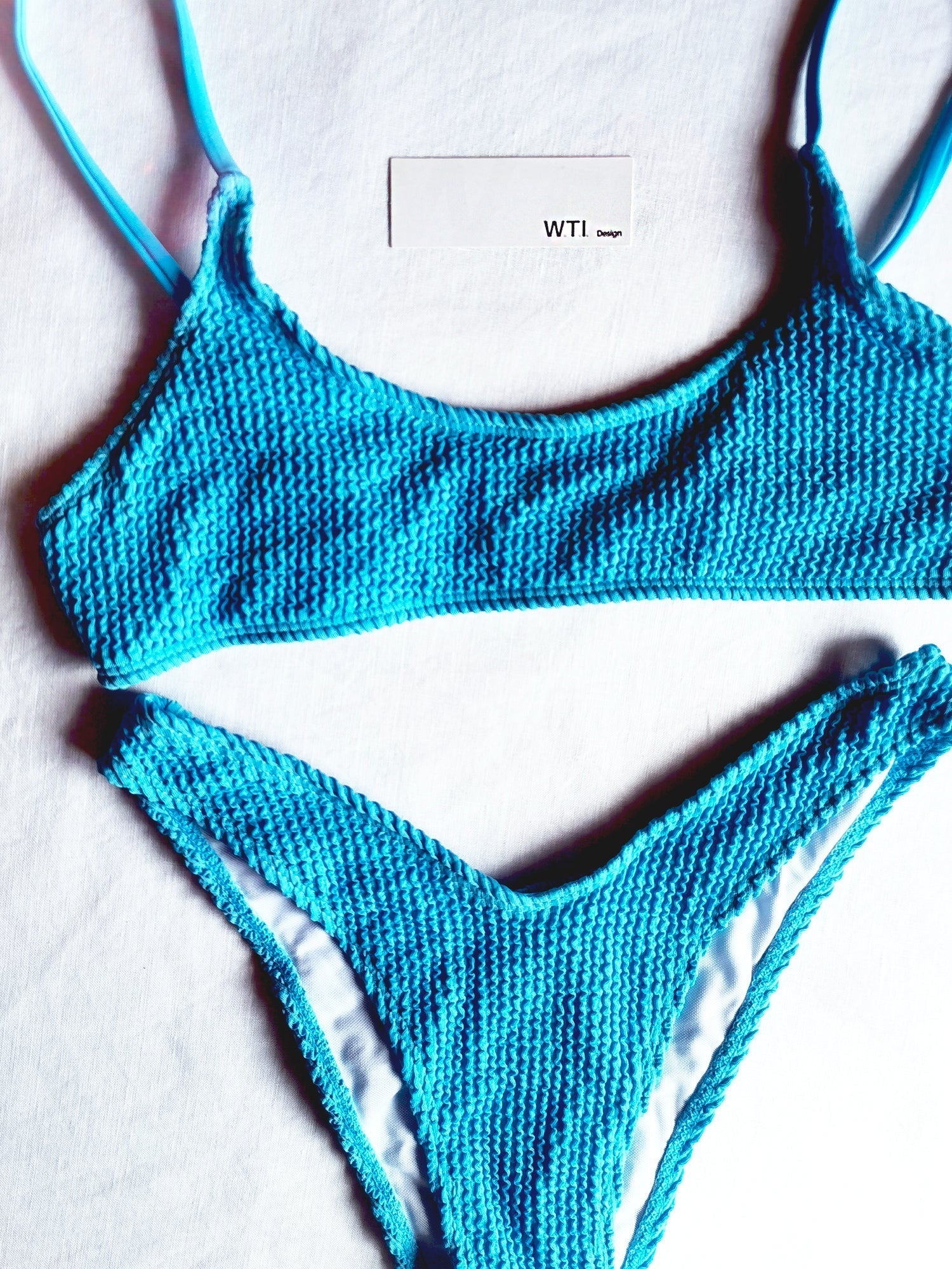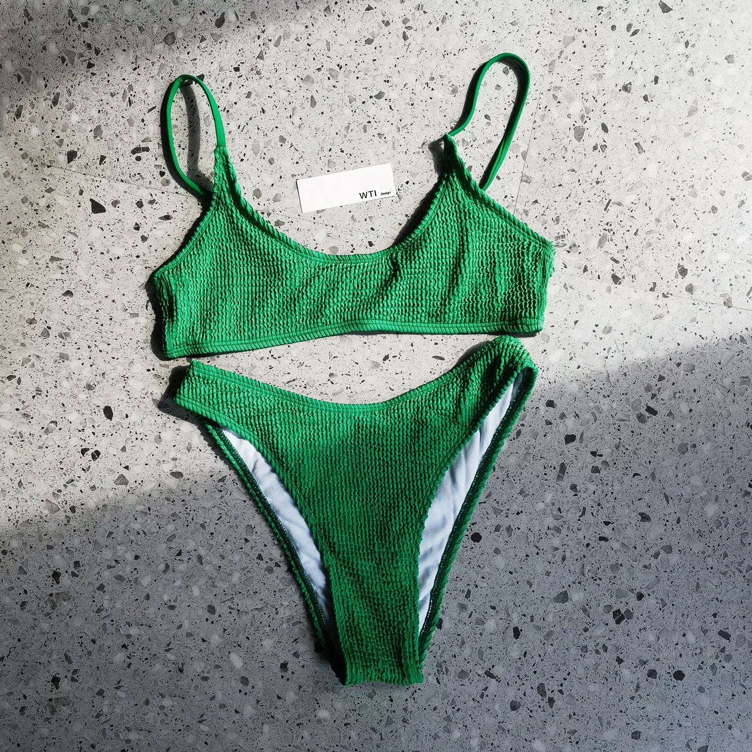 Crinkle Textured Crop Top V Waist Bikini Swimsuit