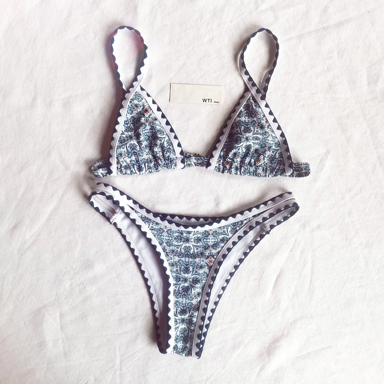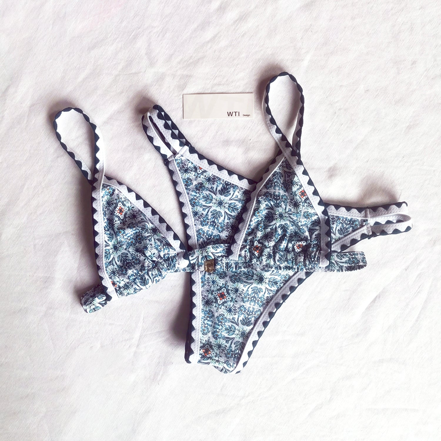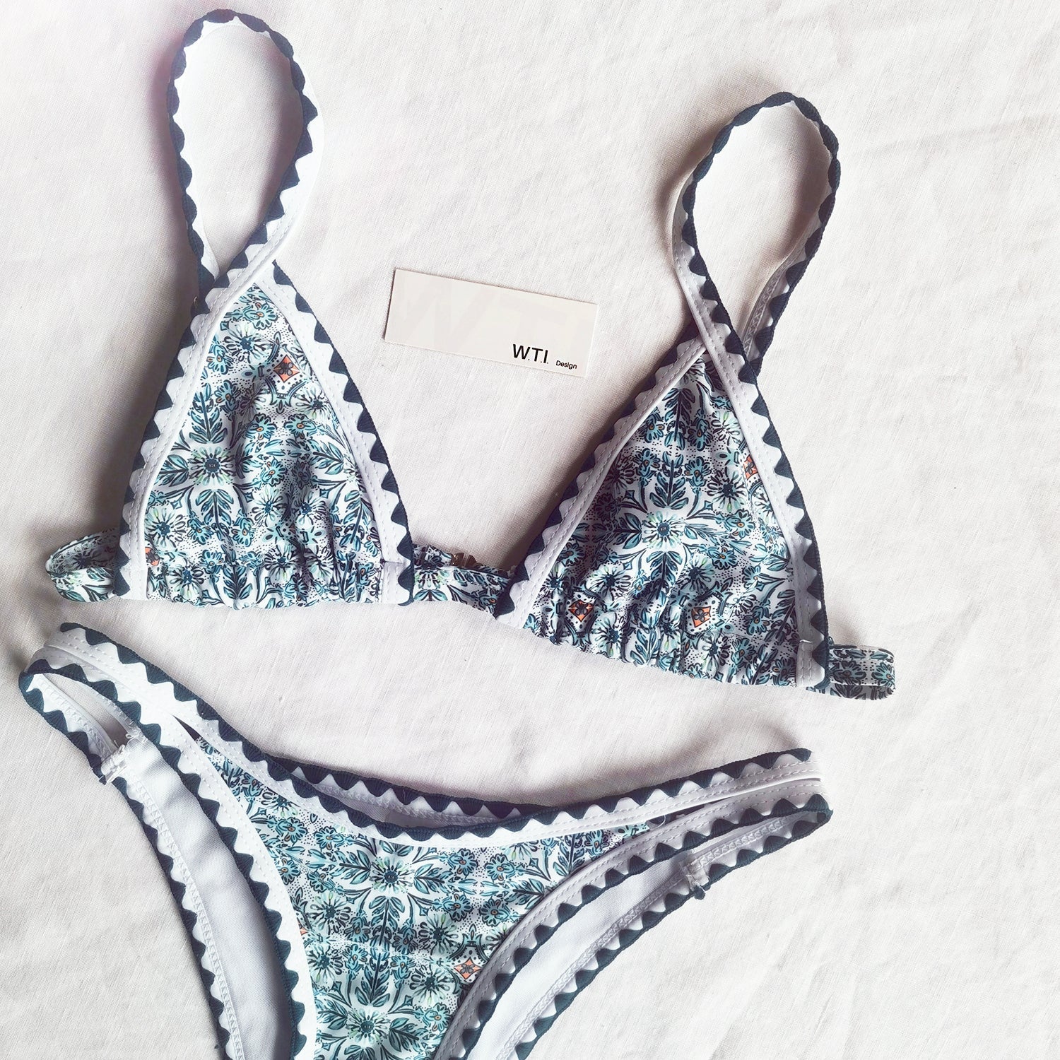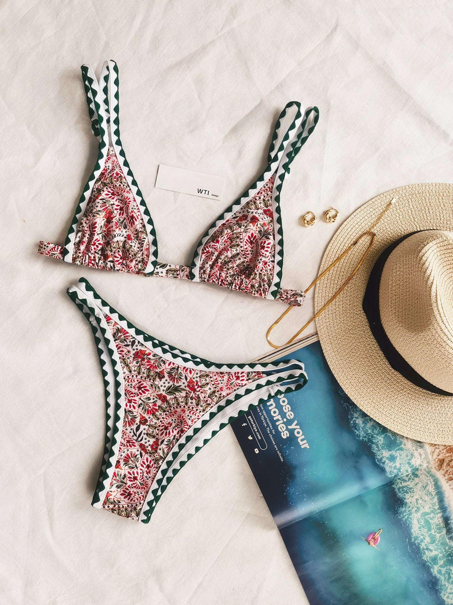 Floral Print Crochet Hem Triangle Bikini Swimsuit