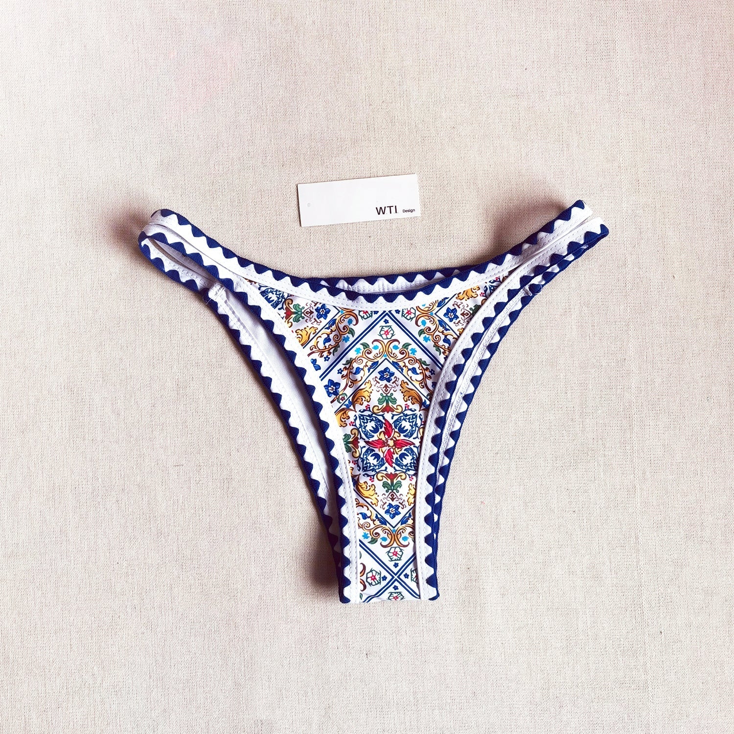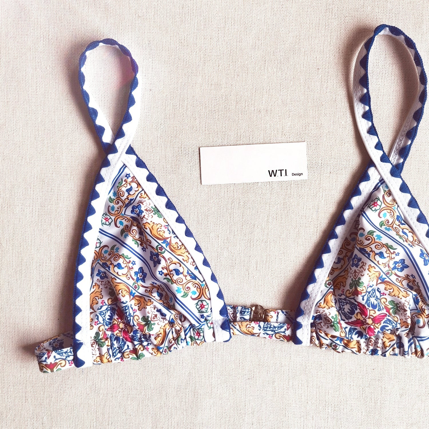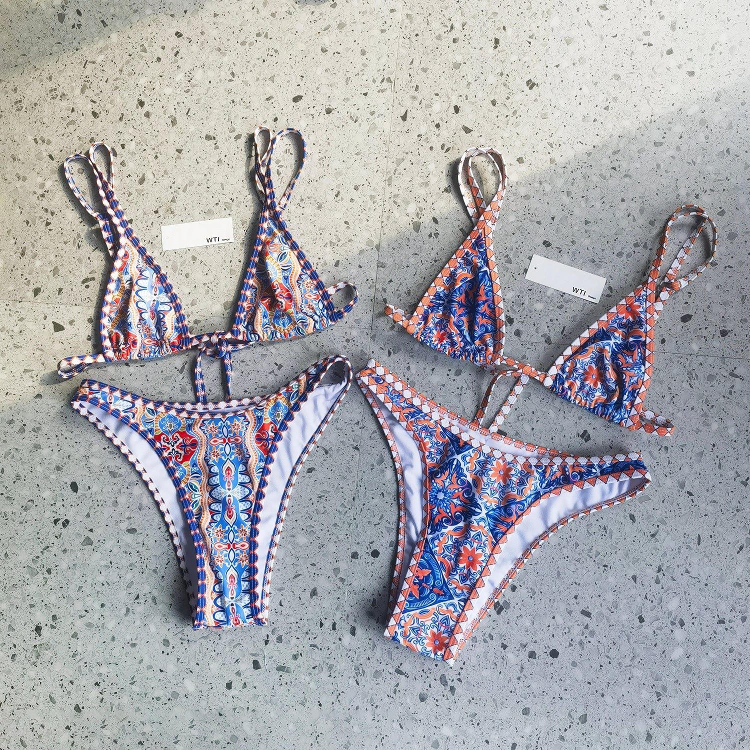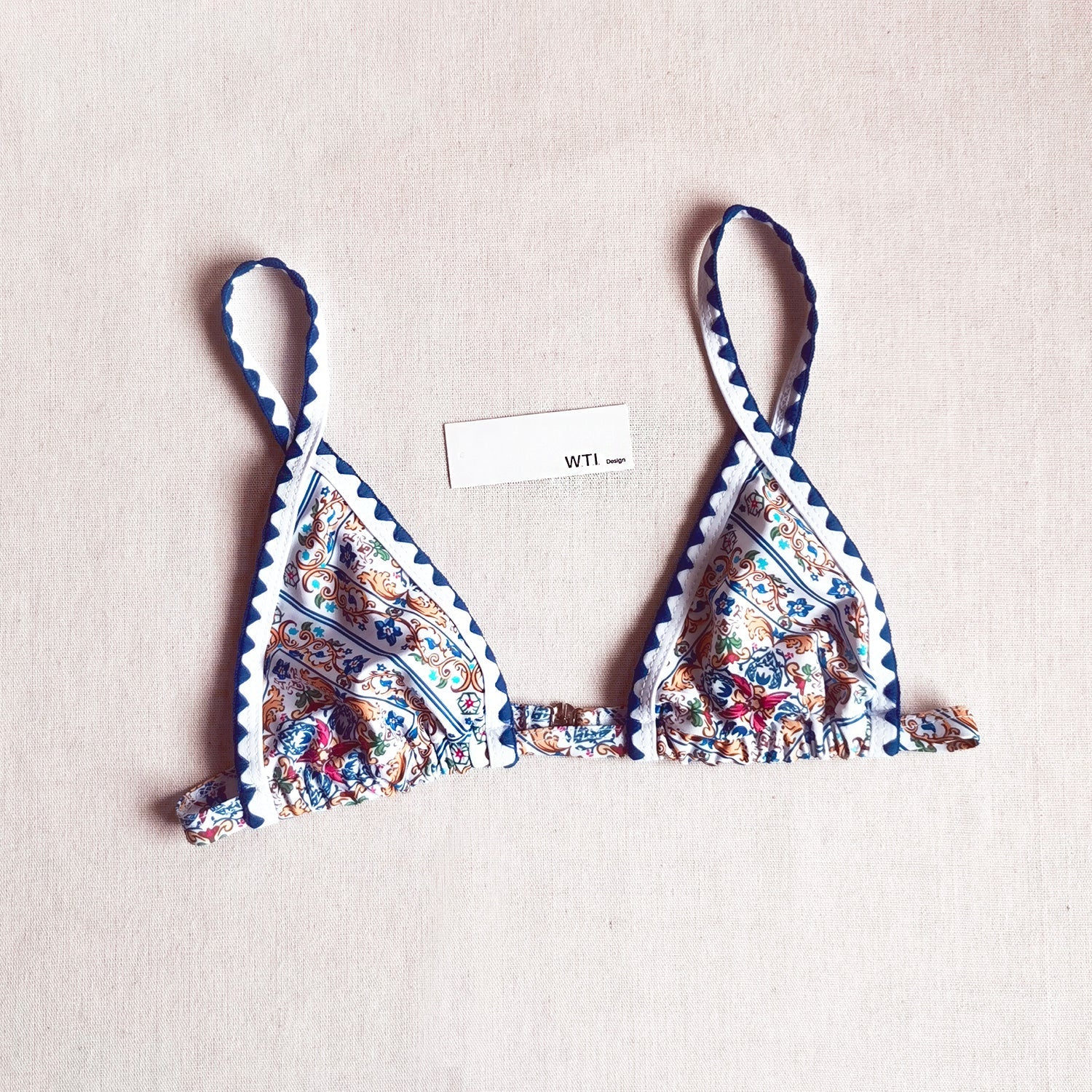 Floral Print Crochet Hem Triangle Bikini Swimsuit