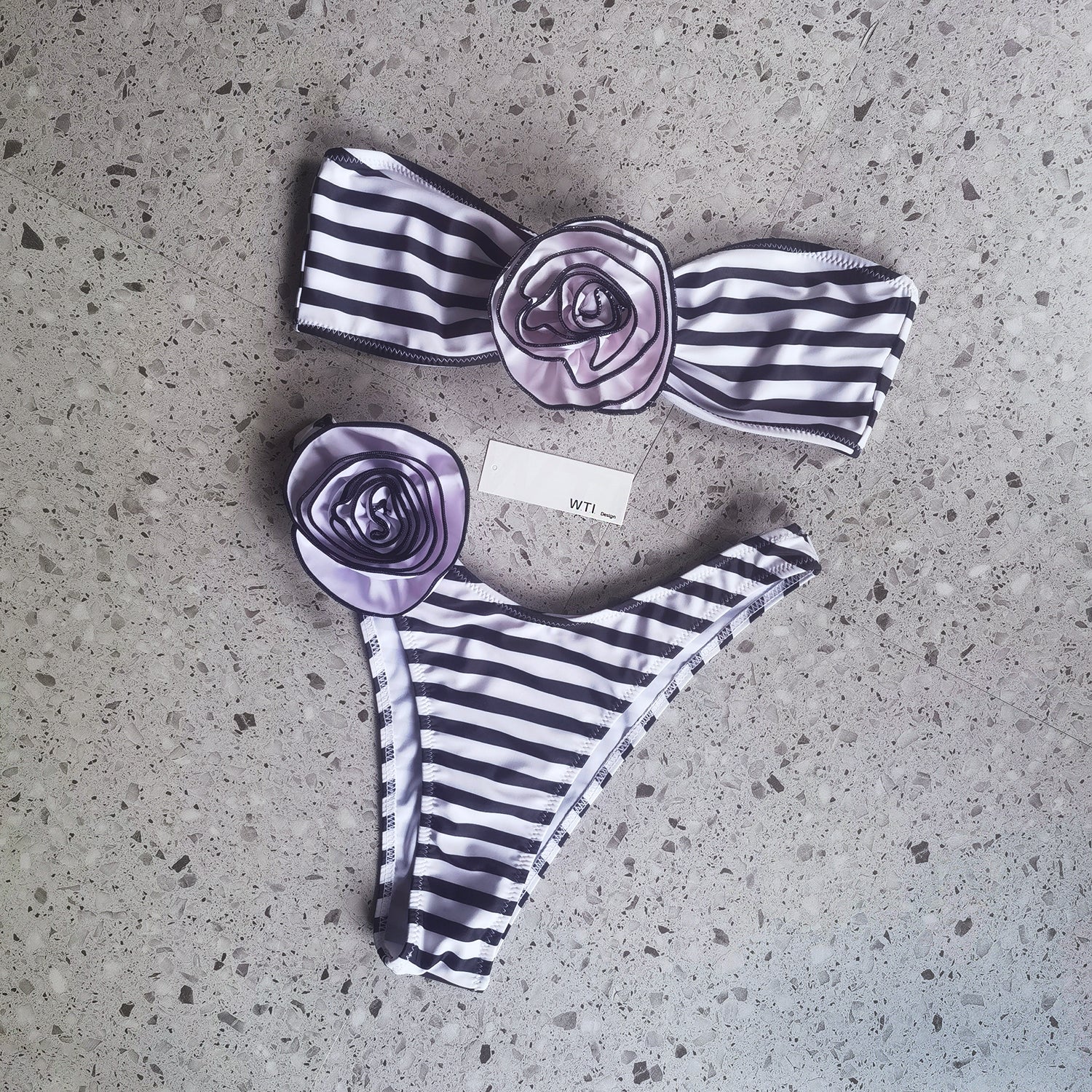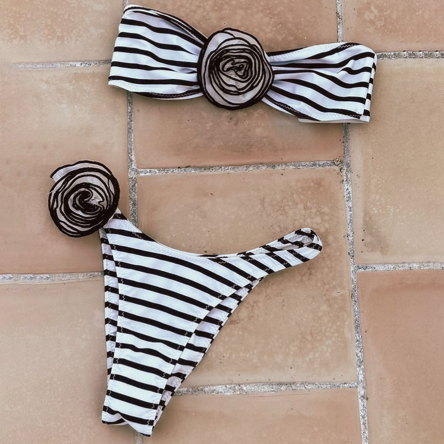 3D Floral Petals Bandeaux Bikini Swimsuit