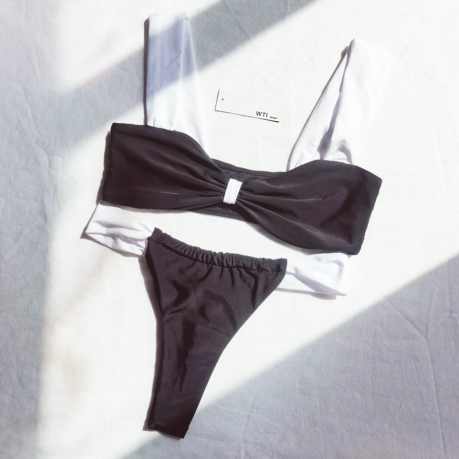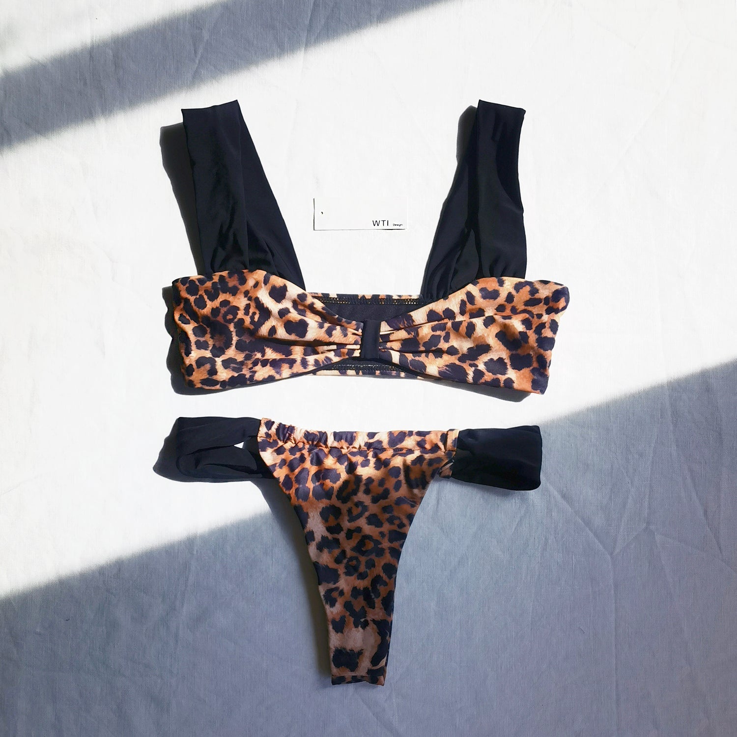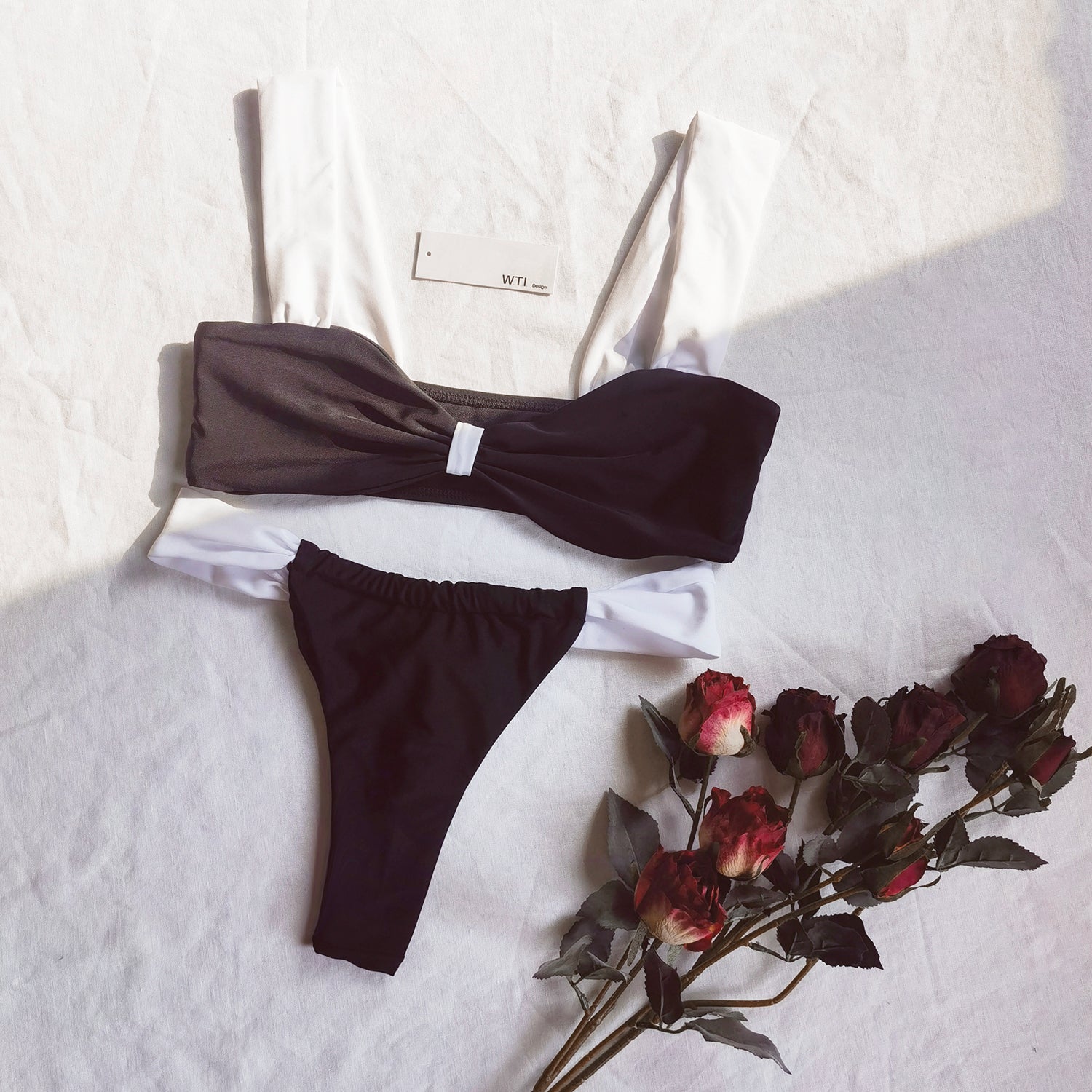 Wide Strap High Cut Bow Corp Bikini Swimsuit